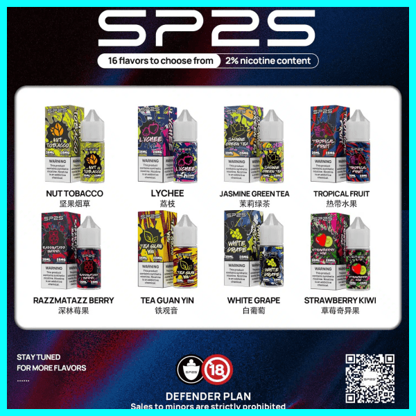 SP2S煙油結合 純淨成分、均衡口感與解癮效果,是注油式設備玩家的理想選擇。不論偏好清涼、果香或經典風格,都能在SP2S系列中找到專屬口味,享受穩定持久的霧化體驗。